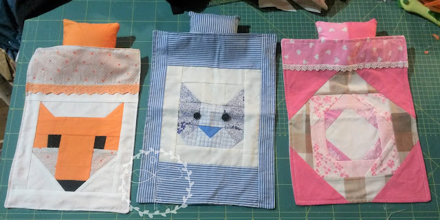 Teine tekk tuli kassiga. Sellega oli asi juba lihtsam, kuna olemas oli täielik õpetus, kuidas ja milliseid juppe kokku õmmelda. Õpetuse leidsin lillyella blogist, kus saab selle ilusti pdf-failina alla laadida. Lõpu poole tekkis väike segadus, et mis millega ikkagi kokku käib, aga loogiliselt mõeldes sai asi tehtud...selline tunne oli nagu oleks üks rida õpetusel vahelt ära jäänud, aga võib-olla ma lihtsalt lugesin diagonaalselt :) No ja muidugi ajas see ka segadusse, et minu tükid ei olnud sama värvi nagu pildi peal :)